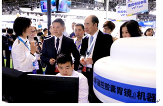 安翰“磁控膠囊胃鏡”機器人同蛟龍?zhí)栞d人深潛器、復興號高鐵、天眼射電望遠鏡、熱聚變實驗堆、神威超級計算機等大型科技成果一起,作為主展區(qū)唯一一家民營高科技研發(fā)成就,向世界展示“中國名片”。