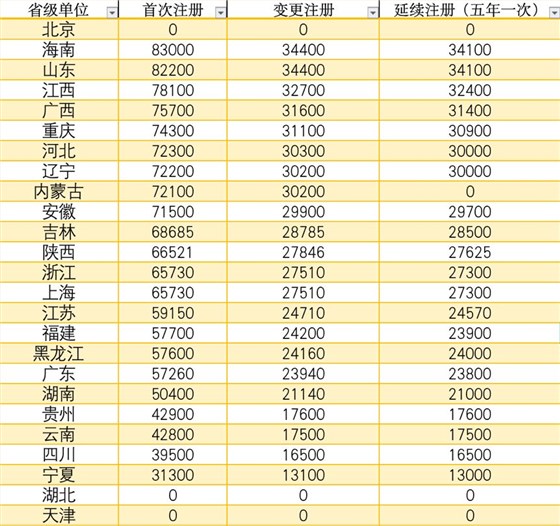 除北京外,免收注冊費的省級單位有天津和湖北。另外,在4月發(fā)布新標(biāo)準(zhǔn)還有湖南省,同樣降幅之大,每個品種首次注冊費較之前降低約2萬余元;變更注冊費和延續(xù)注冊費較之前降低近1萬元。