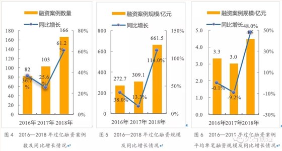 從融資案例數(shù)及規(guī)???,融資總額及單筆融資規(guī)模創(chuàng)近三年新高。2018年,中國醫(yī)療健康產(chǎn)業(yè)VC/PE融資案例數(shù)及規(guī)??傆嫹謩e為639起和704.5億元,相比2017年,融資案例數(shù)同比增長13.1%,小幅提升,融資規(guī)模同比增長101.7%,躍升顯著。2018年單筆融資規(guī)模達到2.5億元,是2017年的2倍左右,創(chuàng)近三年新高。總體來講,醫(yī)療健康產(chǎn)業(yè)投資熱度延續(xù)上漲趨勢。